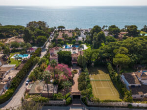 Ubicada en una impresionante parcela de 7.415 m², esta residencia palaciega, considerada una de las 20 mejores casas de Marbella, cuenta con 8 dormitorios, 8 baños y una casa para el conserje con 2 dormitorios y un baño. También hay potencial para construir una casa adicional de 500 m².