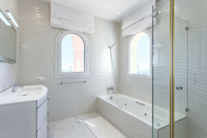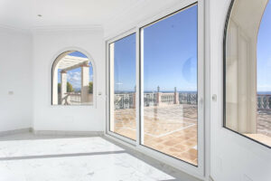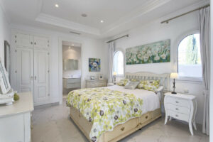 En la planta primera se encuentra el dormitorio principal, con 2 baños individuales en suite y salida a una impresionante terraza privada que bordea toda la estancia y desde la cual poder disfrutar de las espectaculares vistas. Además hay 2 dormitorios dobles más, con sus respectivos baños en suite.