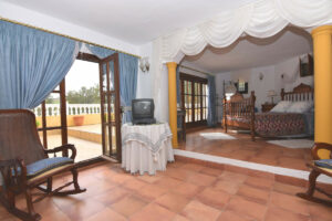 Con más de 320.000 m2 esta finca tiene dos viviendas con 4 dormitorios cada una, Una casa principal y otra para el servicio. Además tiene una sala para fiestas, 2 naves, y una pequeña casa. El agua no es un problema en esta propiedad: tiene 3 lagos con más de 40 metros cúbicos de agua. A esta finca la atraviesa un río. La propiedad tiene una concesión de la Junta de Andalucía para el uso del río y además cuenta con un pozo propio legal.