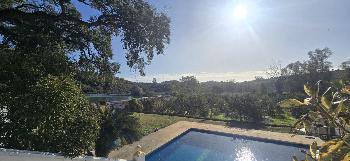 Con más de 320.000 m2 esta finca tiene dos viviendas con 4 dormitorios cada una, Una casa principal y otra para el servicio. Además tiene una sala para fiestas, 2 naves, y una pequeña casa. El agua no es un problema en esta propiedad: tiene 3 lagos con más de 40 metros cúbicos de agua. A esta finca la atraviesa un río. La propiedad tiene una concesión de la Junta de Andalucía para el uso del río y además cuenta con un pozo propio legal.