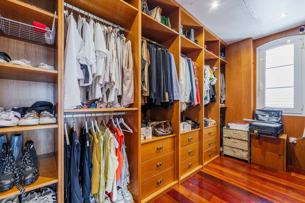 Encantadora villa de estilo mediterráneo en Puerto de la Torre, con amplias zonas exteriores pavimentadas, cuidados espacios ajardinados y elegantes interiores distribuidos en tres niveles. La vivienda da la bienvenida con un vestíbulo de estilo clásico, presidido por una imponente escalera doble de mármol blanco que se abre en dos direcciones. Las barandillas de hierro forjado con detalles ornamentales, junto con los pasamanos de madera, aportan un aire sofisticado y atemporal. Un gran lucernario octogonal en la parte superior inunda el espacio de luz natural, realzando aún más su amplitud, mientras que una escultura clásica situada en el rellano central refuerza la elegancia del conjunto.