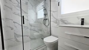 La propiedad cuenta con 2 dormitorios de nuevo con acabado moderno. El maestro tiene un baño privado con baño en la parte superior y una ducha separada con armarios empotrados y a pie, las nuevas puertas corredizas de doble acristalamiento conducen a una gran terraza envuelta en una terraza con vistas a la piscina. El segundo dormitorio tiene un cuarto de baño separado que sirve al resto del apartamento. El apartamento cuenta con persianas eléctricas en todas partes, aire acondicionado y un moderno sistema de calefacción económica. El edificio es muy privado con entrada amurallada envolvente.