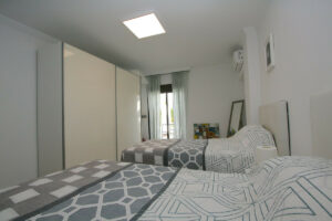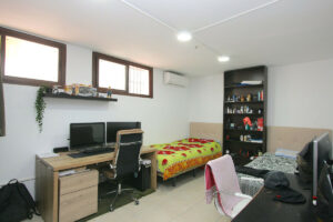 Apartamento de invitados: En el nivel inferior, junto al garaje, se encuentra un apartamento de invitados independiente con tres dormitorios, un baño, un aseo, una pequeña cocina y un amplio salón. Todas las habitaciones disponen de luz natural, lo que lo convierte en un espacio ideal para invitados o familiares.