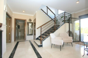 Vivienda principal: La arquitectura de la villa combina detalles clásicos, como suelos y baños de mármol, con elementos contemporáneos —líneas limpias, espacios abiertos y abundante luz natural— creando una atmósfera sofisticada y acogedora.