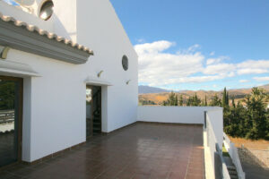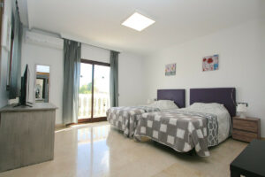 La vivienda principal ofrece cinco amplios dormitorios y cuatro baños. Al entrar, un luminoso recibidor conduce directamente al jardín, mientras que al otro lado se encuentra un gran salón y una cocina totalmente equipada con isla, que da acceso al área de barbacoa y a la piscina. En esta planta también hay un dormitorio principal con baño en suite y un segundo dormitorio espacioso con su propio baño. La segunda planta alberga otro elegante dormitorio principal con magníficas vistas a la montaña y un balcón privado con vistas a Mijas Golf. Dos dormitorios adicionales comparten un baño moderno. Desde este nivel se accede a una amplia terraza con vistas panorámicas sobre Fuengirola, el mar y el entorno verde de La Sierrezuela.
