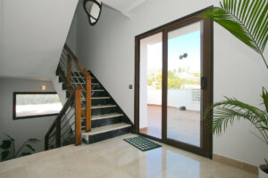 Aparcamiento y extras: La villa dispone de un garaje privado para hasta tres coches y espacio exterior para tres más. En la parte superior se encuentra una gran azotea con vistas panorámicas espectaculares, ideal para crear una zona de descanso donde disfrutar del sol y de las impresionantes puestas de sol.