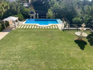 8 dormitorios y 8 baños, aseo de invitados independiente en la planta baja de la casa, cocina moderna equipada, sistema de domótica, suelos de mármol con calefacción en toda la casa, incluidos los baños, estudio-biblioteca, acogedora sala de cine. Para el descanso y la relajación spa con jacuzzi y hammam. piscina cubierta,