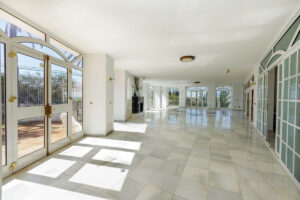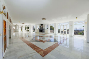 Al entrar en el gran vestíbulo, le recibirán inmediatamente unas vistas panorámicas del mar resplandeciente y las majestuosas montañas que rodean esta exclusiva propiedad. A su izquierda, encontrará dos amplios salones, cada uno con una impresionante chimenea de mármol, que ofrecen un ambiente sofisticado y acogedor, perfecto tanto para relajarse como para recibir invitados. La casa cuenta con dos enormes cocinas, ideales para los amantes de la gastronomía, junto con dos amplios trasteros y un comedor formal diseñado para celebrar fastuosas reuniones.